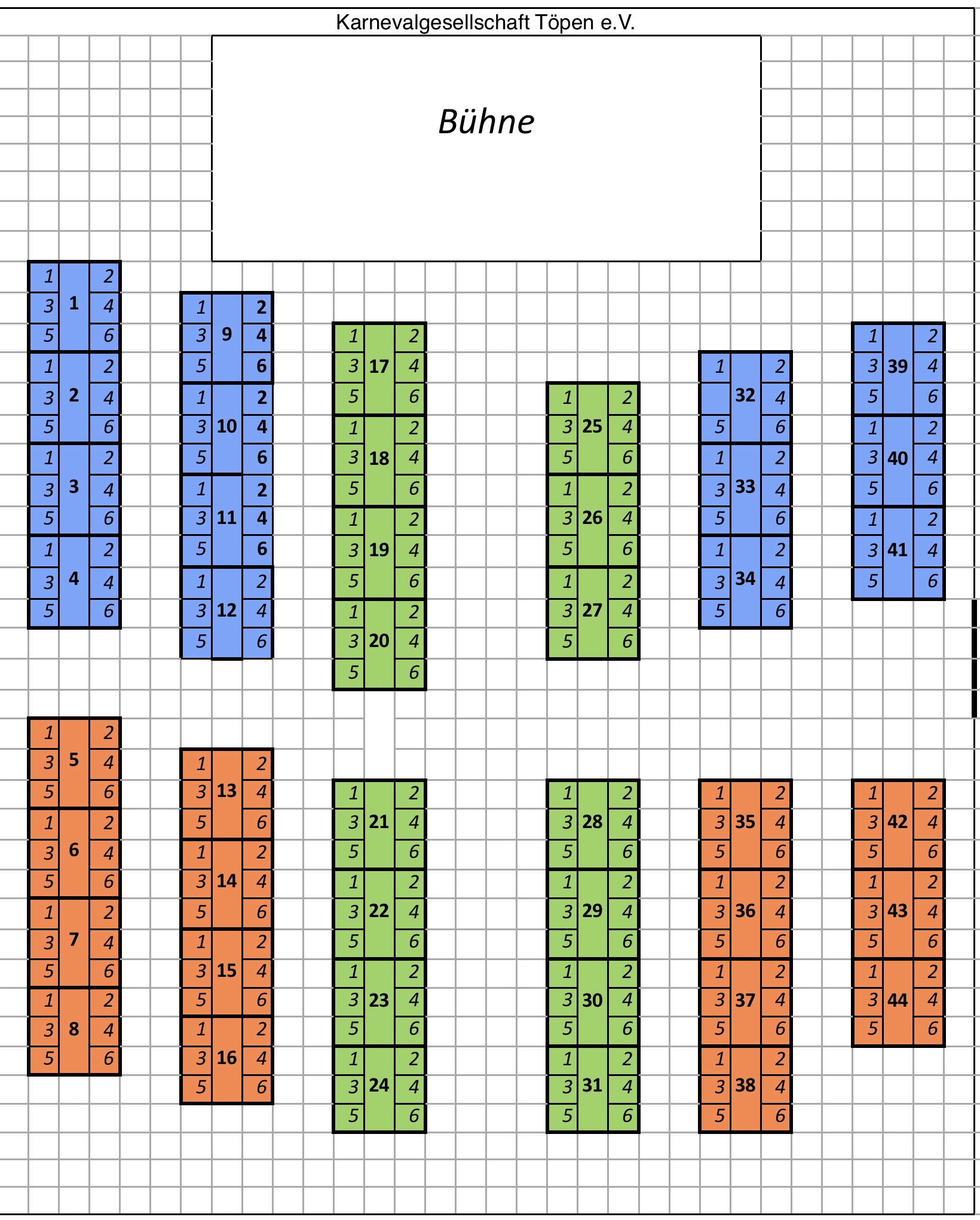Die Kartenbestellung / -reservierung wird erst verbindlich, wenn die Überweisung für die Eintrittskarten auf dem Konto der Karnevalsgesellschaft Töpen e.V. eingegangen ist. Die Zahlungsdaten erhältst du nach Eingang der Kartenbestellung per Mail. Bitte begleiche den Betrag innerhalb von 7 Tagen (ansonsten erlischt die Bestellung). Anschließend erhältst du von uns eine Reservierungsbestätigung, mit der du dann am Tag der Veranstaltung deine Tickets bekommst. Wenn die Portogebühren übernommen werden versenden wir die Karten auch gerne.